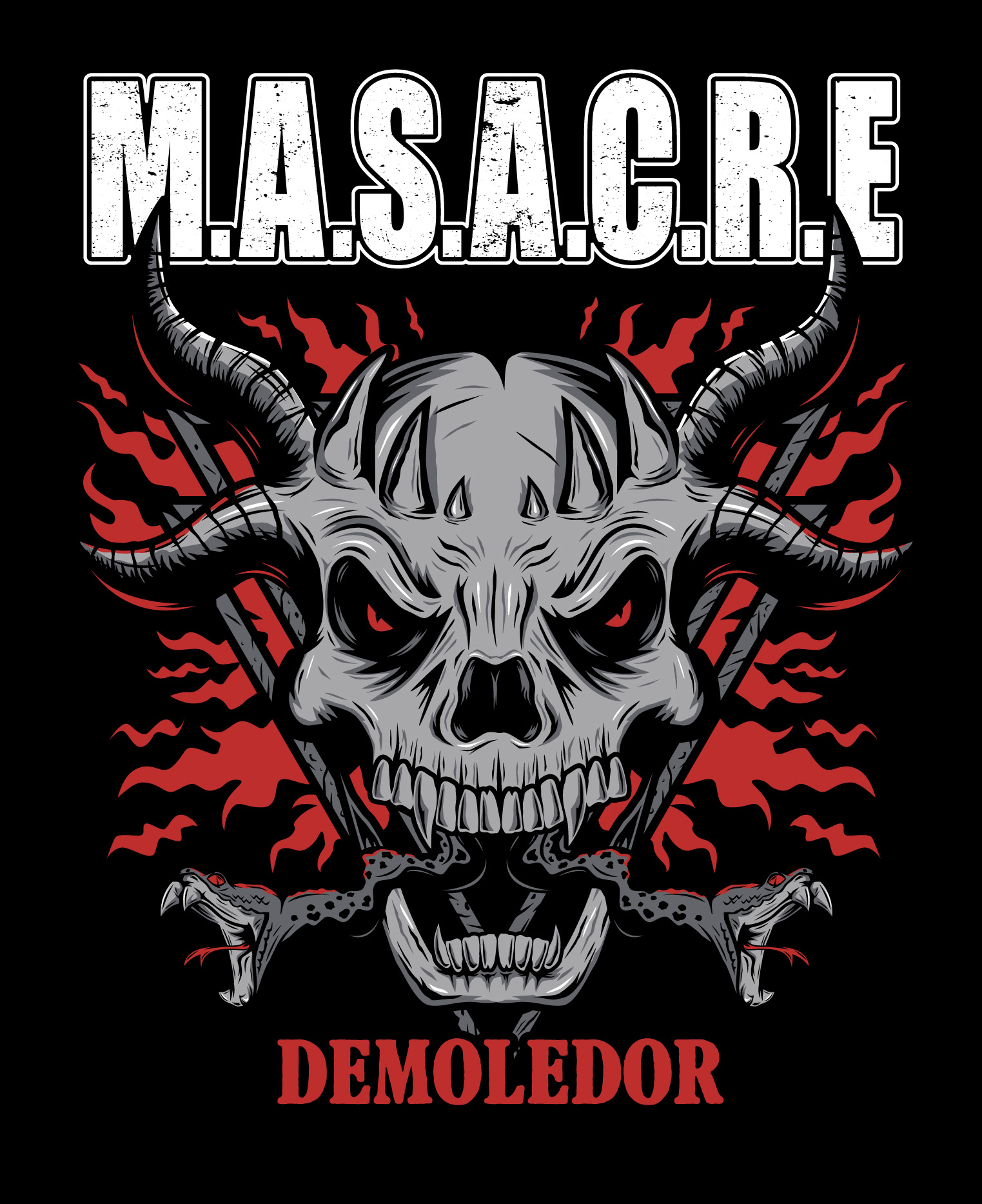 En el caso de esta ilustración en particular quise buscar algo que fuera indudablemente heavy metal: una calavera con múltiples cuernos y serpientes en la boca, no hay mucha ciencia, aunque mi idea era que sea simétrica para que tuviera orden y se viera súper agresiva.